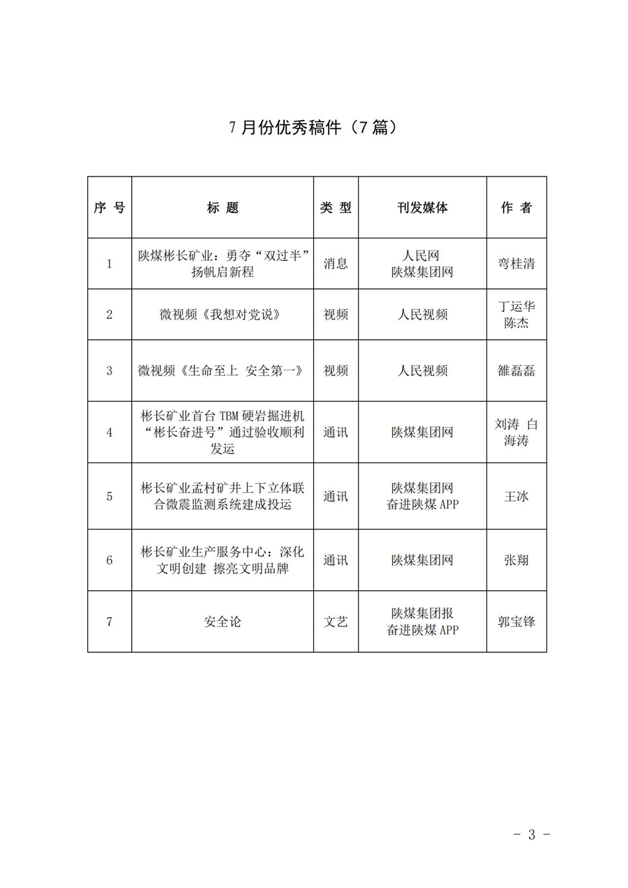 關于7月份稿件采用及優秀稿件評選情況的通報