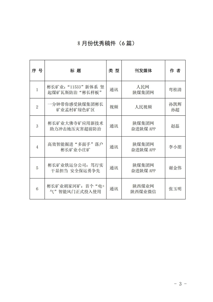 關于8月份稿件采用及優秀稿件評選情況的通報