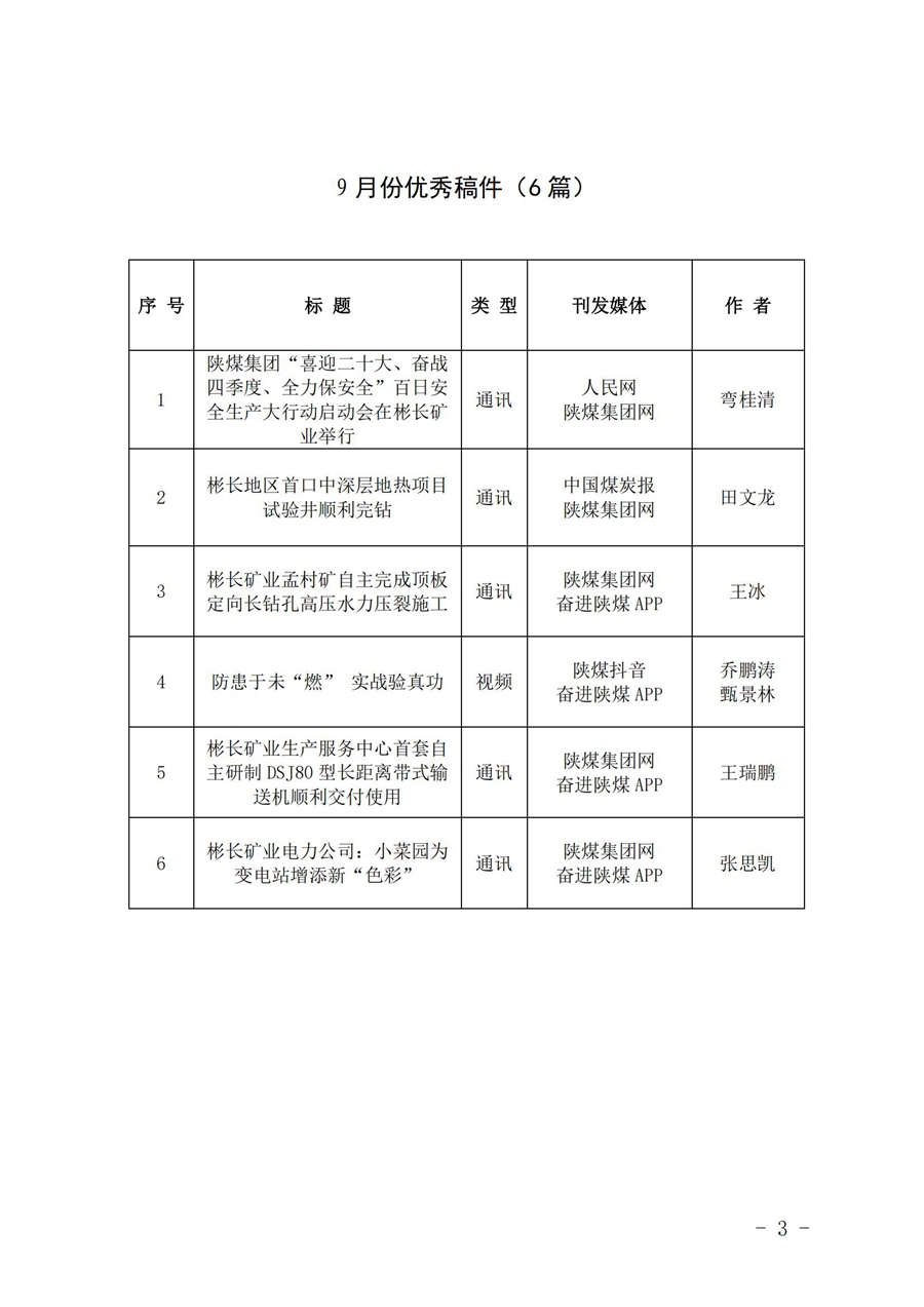 關于9月份稿件采用及優秀稿件評選情況的通報