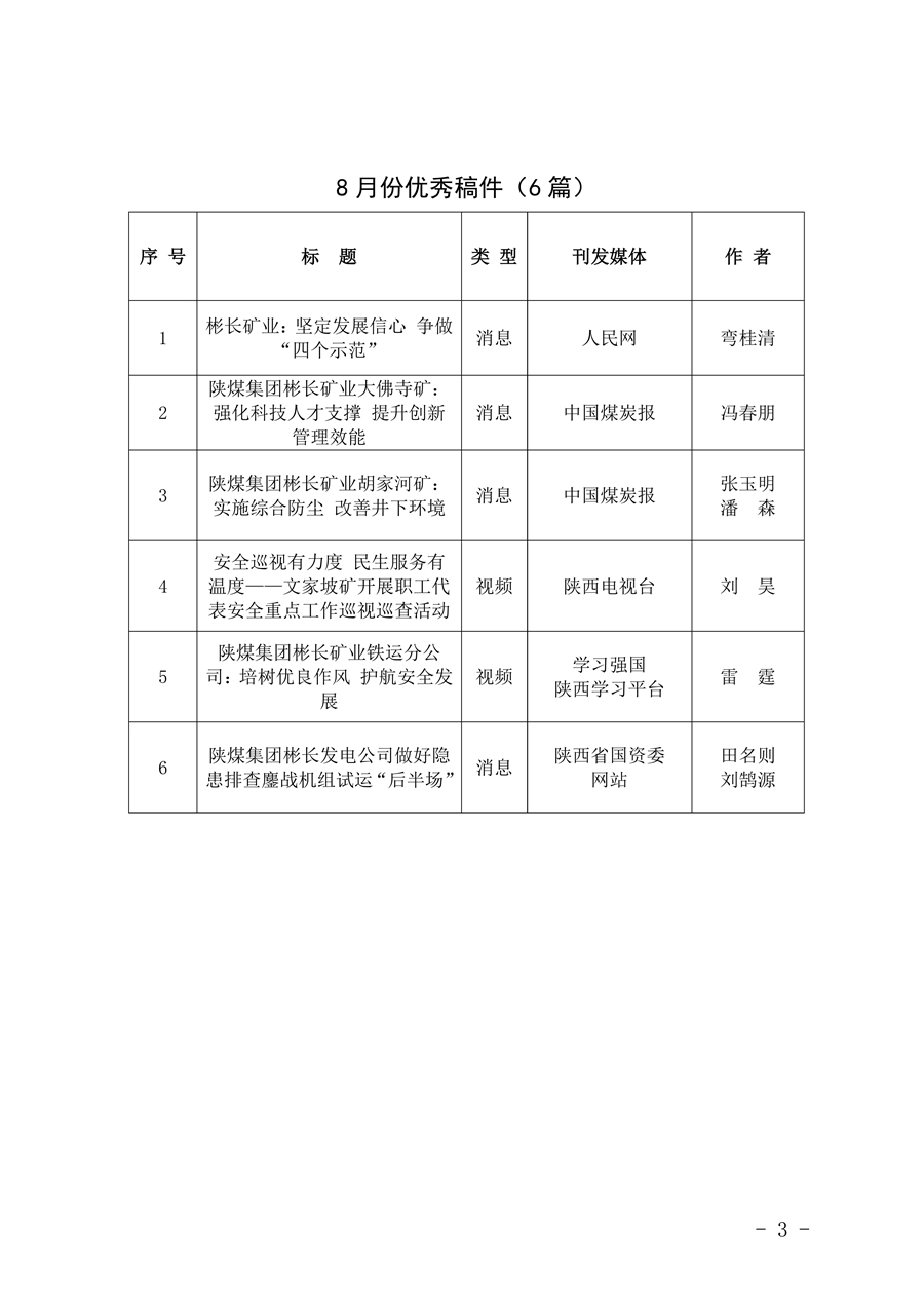 關(guān)于8月份稿件采用及優(yōu)秀稿件評選情況的通報