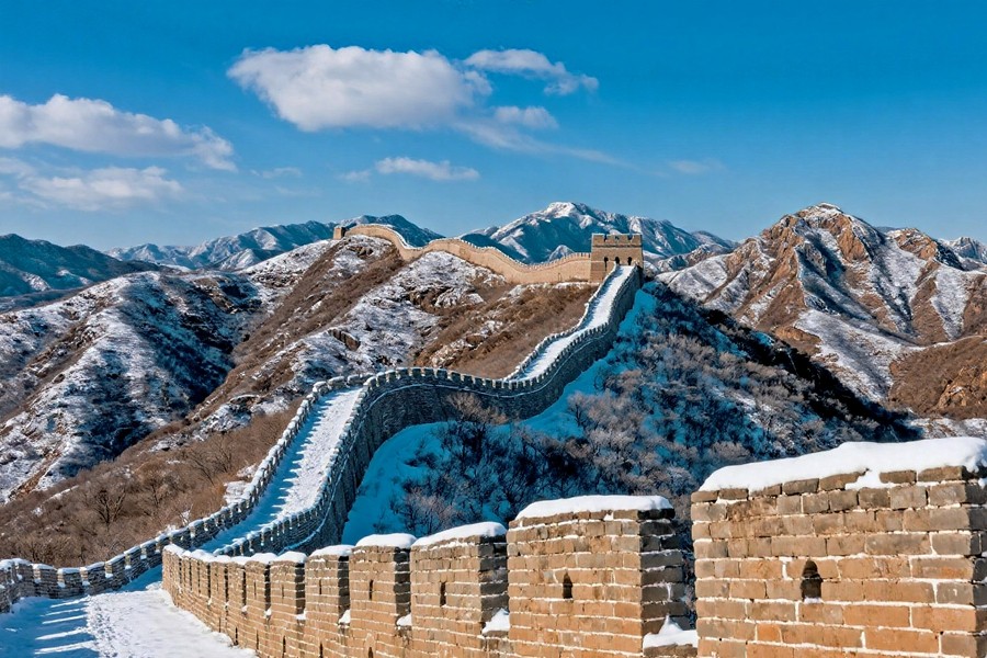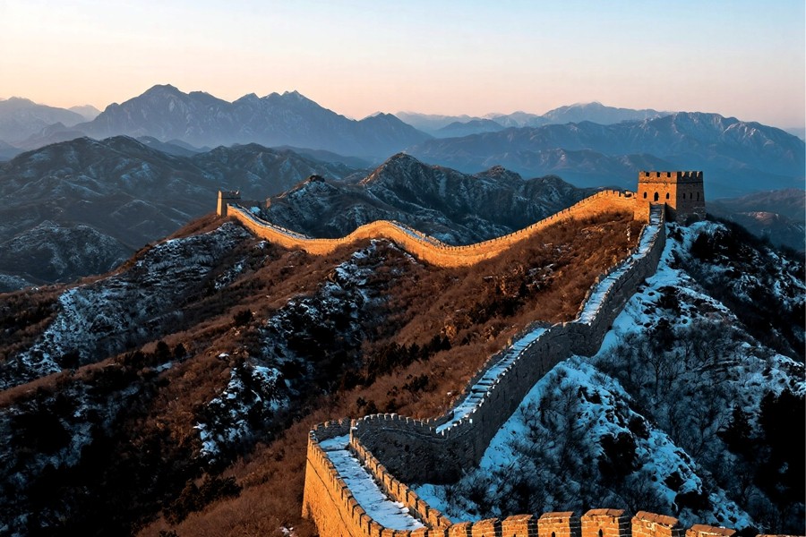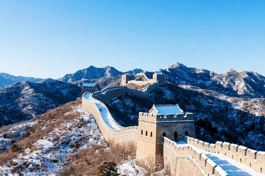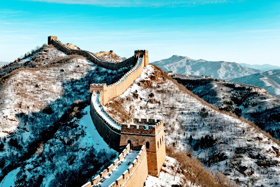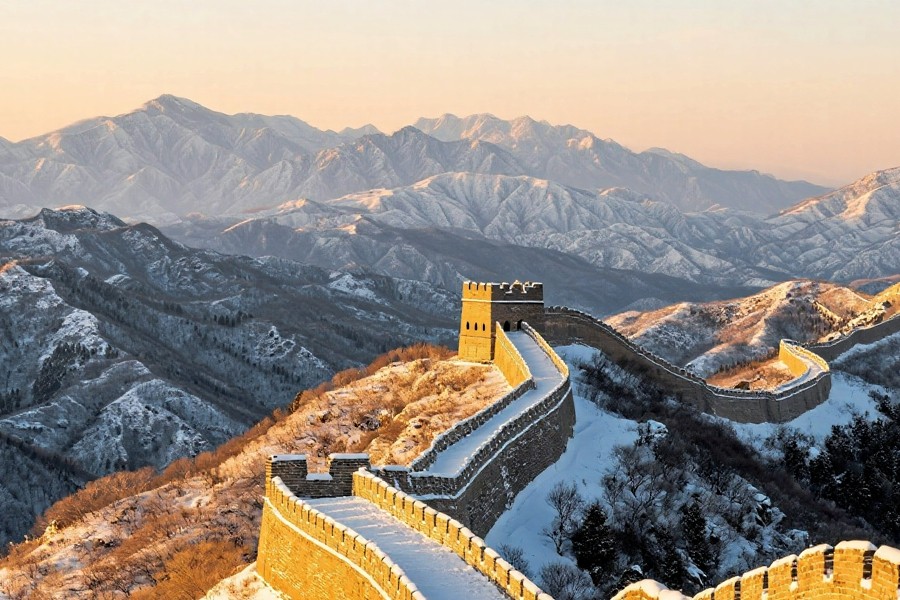雪后的八達(dá)嶺長城,如巨龍般蟄伏于燕山山脈。晨光里,鎏金般的城磚與皚皚白雪交相輝映,敵樓矗立在山巔,飛檐與雉堞覆著薄雪,愈發(fā)巍峨。晴空下,長城蜿蜒穿梭于銀裝素裹的群峰間,氣勢磅礴。日暮時分,余暉為城墻鍍上暖芒,與遠(yuǎn)山的雪色相融,盡顯中華巨龍的雄渾壯闊與冬日的蒼茫大美。(小莊礦 曾鵬)