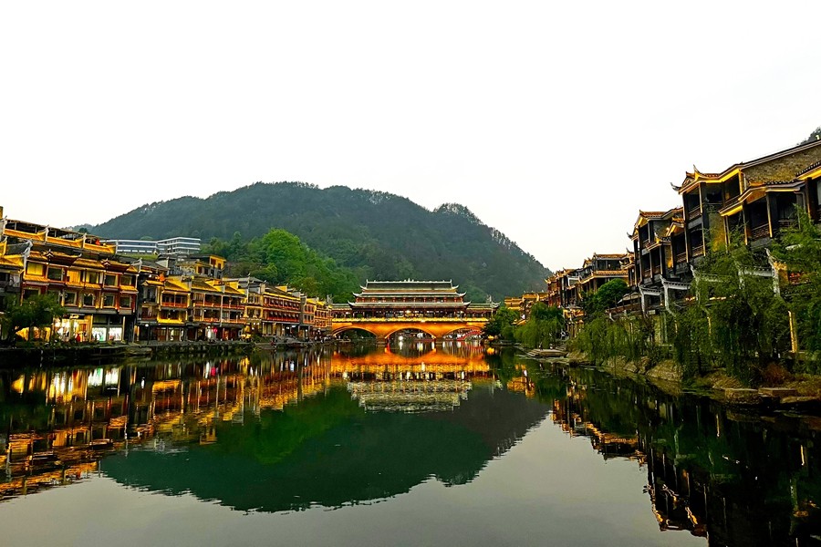 鳳凰古城,舊稱鎮(zhèn)筸城,位于湖南省湘西土家族苗族自治州的西南部,占地面積約10平方千米,由苗族、漢族、土家族等28個(gè)民族組成,因背依的青山酷似一只展翅欲飛的鳳凰而得名。城內(nèi)青石板街道、江邊木結(jié)構(gòu)吊腳樓,以及朝陽(yáng)宮、古城博物館、楊家祠堂、沈從文故居、熊希齡故居、天王廟、大成殿、萬(wàn)壽宮等建筑,全都透著古城特色。古城現(xiàn)有文物古建筑68處,古遺址116處,明清時(shí)代特色民居120多棟,各種廟祠館閣30多座,是中國(guó)西南現(xiàn)存文物古建筑最多的縣。(文家坡礦 王毅)