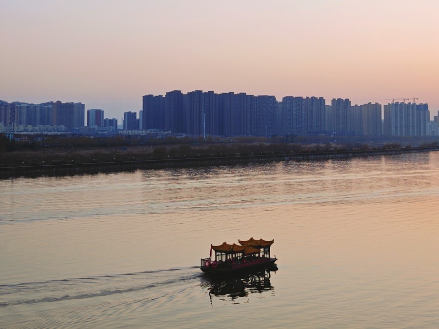 當(dāng)微風(fēng)吹過(guò),冰面就會(huì)發(fā)出清脆的聲響,仿佛在訴說(shuō)著冬天的故事。遠(yuǎn)處的高樓、冰面、橋還有那劃破平靜水面的游船,形成了一幅美麗的冬日畫(huà)卷。(胡家河礦 張寶龍)