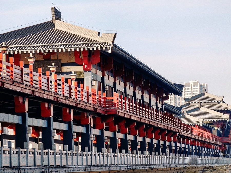 封冰岸樹(shù)還爭(zhēng)綠,凍水湖光盡放藍(lán)。漫步于古渡廊橋之上,感受這咸陽(yáng)湖冬季的別樣韻味。當(dāng)午后的陽(yáng)光灑在冰面上時(shí),那道道冰裂紋顯得格外晶瑩剔透,猶如一顆巨大的寶石。