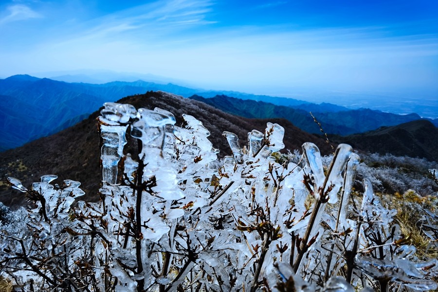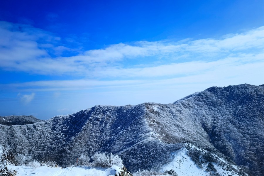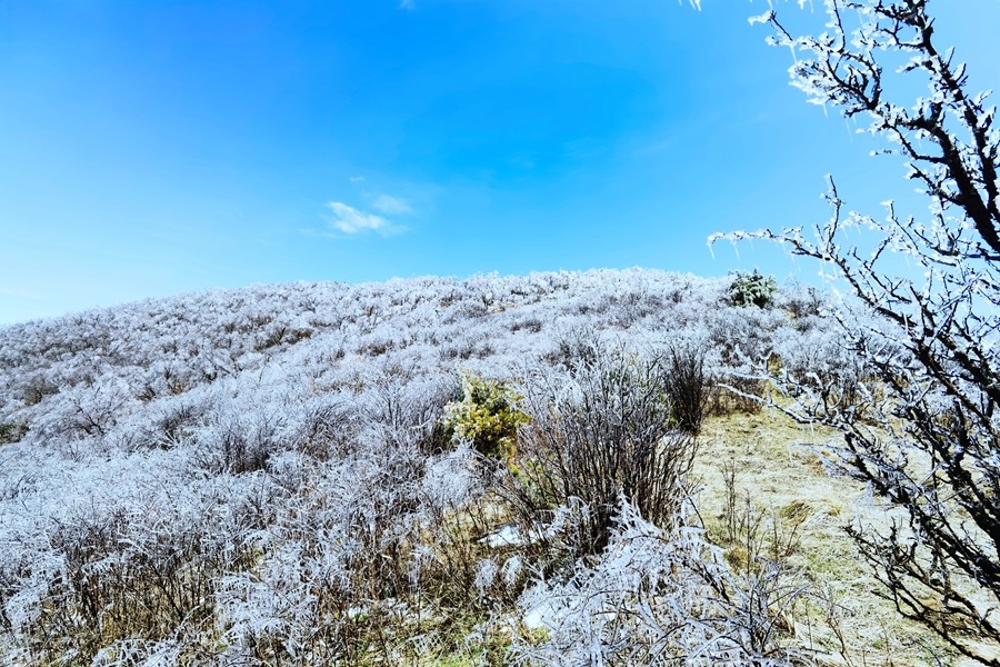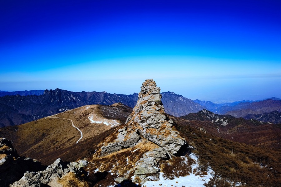 跑馬梁位于寧陜縣境內(nèi),海拔2660米,位于鹿角梁和冰晶頂之間,是當(dāng)?shù)厝藢?duì)這一秦嶺梁草甸的稱呼。在寧陜縣境內(nèi),沿壕溝的林場(chǎng)路向北上行,到埡口后向西南行、過箭竹林,上石崖陡坡路到大平臺(tái),也是一個(gè)觀景臺(tái),東望可清晰的看到鹿角梁上的鹿角和光頭山上的轉(zhuǎn)播塔,西可看見寬闊綿延起伏的跑馬梁大梁,雄偉壯觀,可與鹿角梁媲美。(孟村礦 劉遠(yuǎn)見)