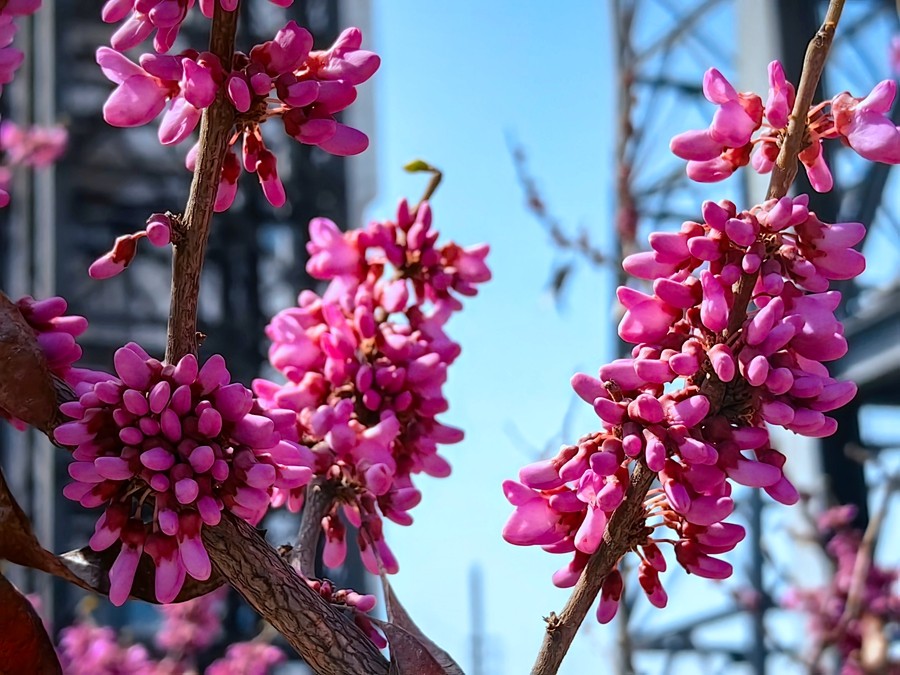三月的胡家河礦,春色美如畫。漫步在礦區(qū)里,紫荊花、蒲公英、紫葉李等次第開放,一陣微風吹過,柳條翩翩起舞,花朵隨風舞動,搖曳多姿。春光美、春風柔、春花艷,人在花中走,恰似畫中游。捧起這抹春光,在馥郁醉人的花香中陶醉。(張寶龍)
