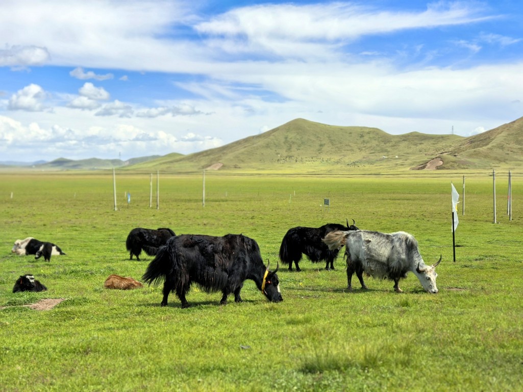 桑科草原位于甘肅省甘南藏族自治州夏河縣境內(nèi),四周群山環(huán)抱,水草豐茂、牛羊遍野,大夏河從南向北緩緩流過(guò),宛如一條哈達(dá)飄落于綠毯之上,水波蕩漾、清澈見底,藍(lán)天、白云映入水中,構(gòu)成了一幅絕美的畫面。置身其間、回歸自然,融入這如畫的風(fēng)景之中,充分領(lǐng)略藏族獨(dú)特的游牧生活風(fēng)情。(大佛寺礦 張洋)