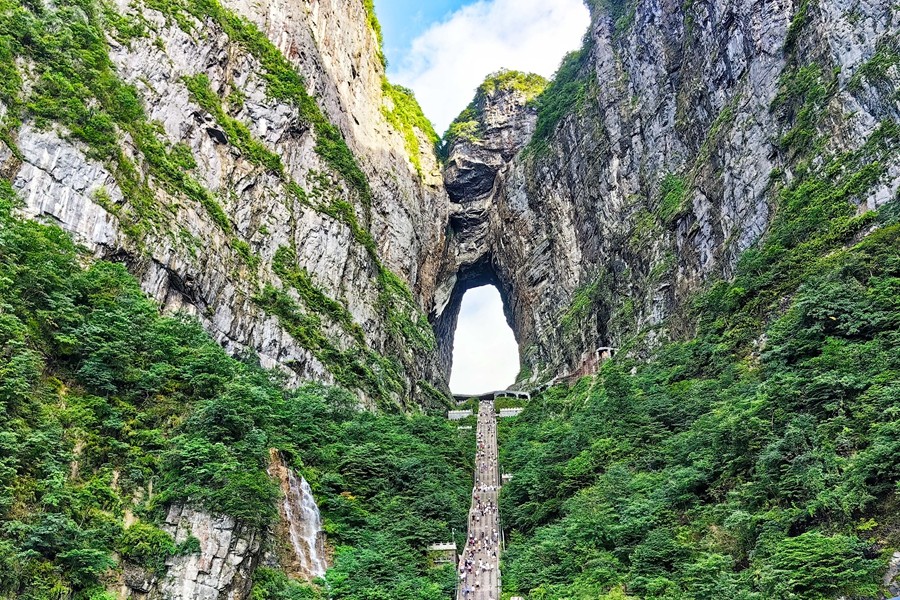??張家界天門山國家森林公園?位于湖南省張家界市永定區(qū),以其壯麗的山峰、險峻的懸崖和豐富的自然景觀而聞名。公園總面積達96平方公里,山頂面積2平方公里,主峰海拔1518.6米。天門山不僅因其自然奇觀天門洞而得名,還因為其山頂保存著完整的原始次生林,擁有許多珍貴的植物品種,被譽為“世界最美的空中花園”和“天界仙境”。(文家坡礦 李治學)
