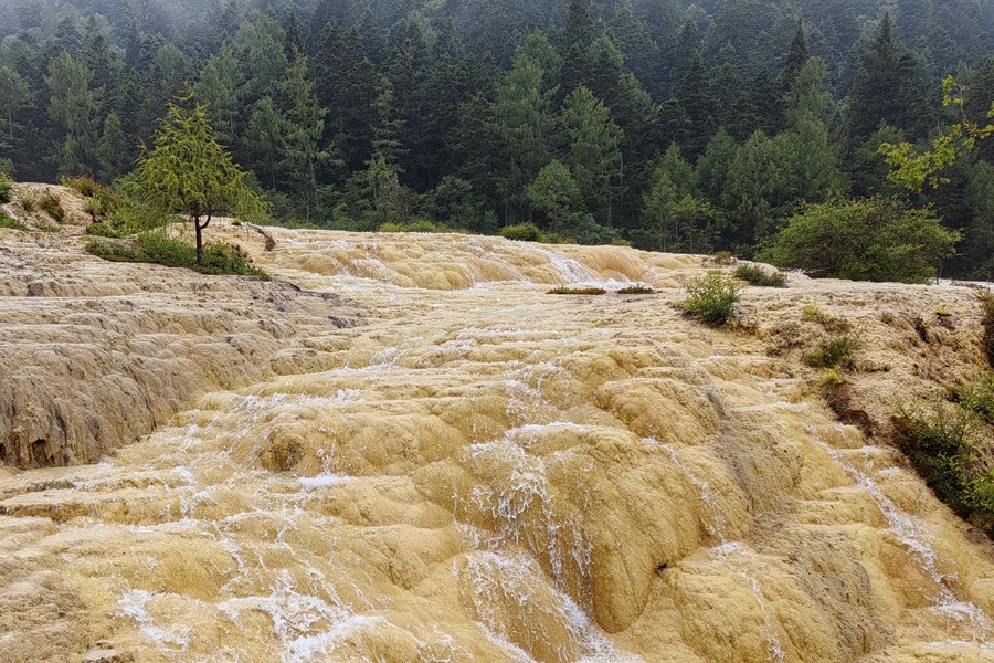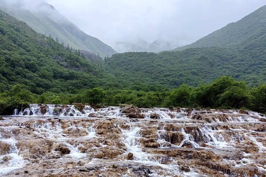 黃龍景區(qū)位于四川省阿壩藏族羌族自治州松潘縣岷山主峰雪寶頂下,面臨涪江源流,是中國唯一保護(hù)完好的高原濕地。其以規(guī)模宏大、結(jié)構(gòu)奇巧、色彩豐艷的地表鈣華景觀為主景,以罕見的巖溶地貌蜚聲中外,堪稱人間仙境,素有“人間瑤池”的美譽(yù)。(大佛寺礦 牛偉棟)