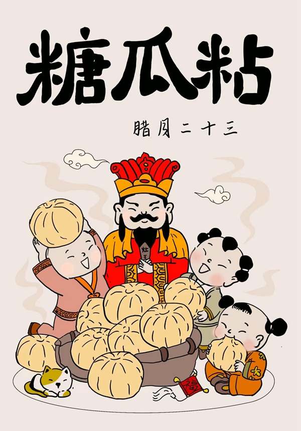 王丹妮創(chuàng)意繪畫:糖瓜甜糯祭灶王 撣塵凈室迎福祥