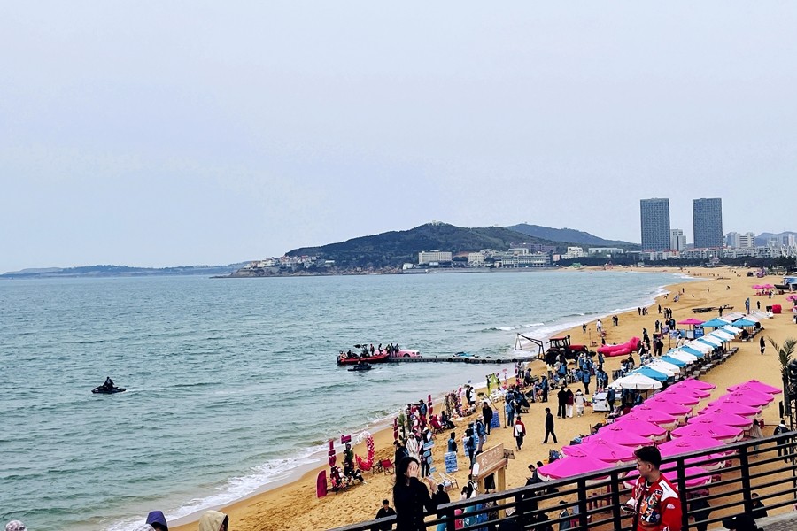 威海位于山東半島最東端,北、東、南三面瀕臨黃海,北緯 37° 的黃金緯度賦予了它四季分明的詩意,金色的沙灘與湛藍的海水交織在一起,構(gòu)成了一幅美麗的海景,讓人陶醉其中。(孟村礦 孫超)