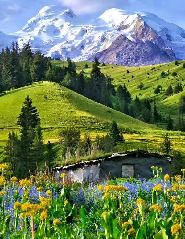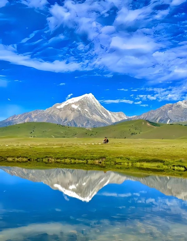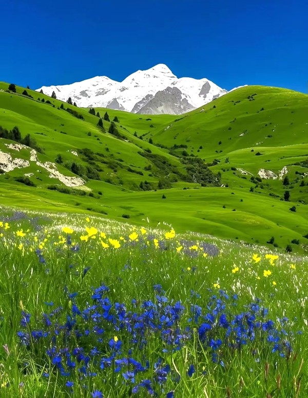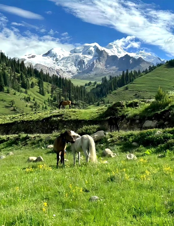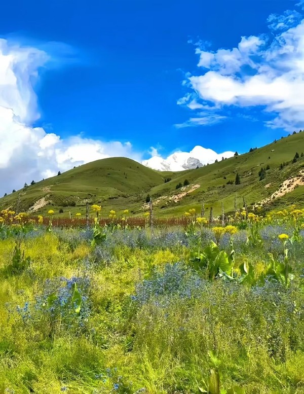 格聶,這座神山矗立于四川理塘,海拔6204米,是沙魯里山脈主峰,藏傳佛教的圣地。進(jìn)入盛夏,雪山映襯著無(wú)邊的花海,冰川融水匯成清澈溪流。草甸似翠緞延展,野花點(diǎn)綴其間,野馬悠閑漫步,如一幅巨美的畫卷鋪展開來(lái)。(鄭小楠)