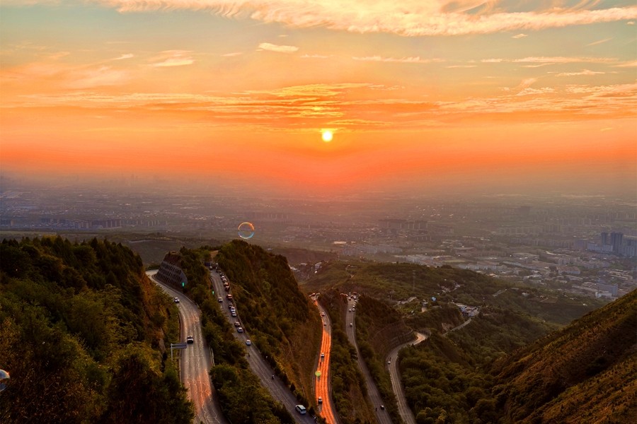 驪山位于西安臨潼區(qū)城南,是秦嶺北側(cè)的一個(gè)支脈,山勢逶迤、樹木蔥蘢,景色翠秀、美如錦繡,又名“繡嶺”。每當(dāng)夕陽西下,驪山輝映在金色的晚霞之中,景色格外綺麗,有“驪山晚照”之美譽(yù)。(大佛寺礦 趙芳艷)