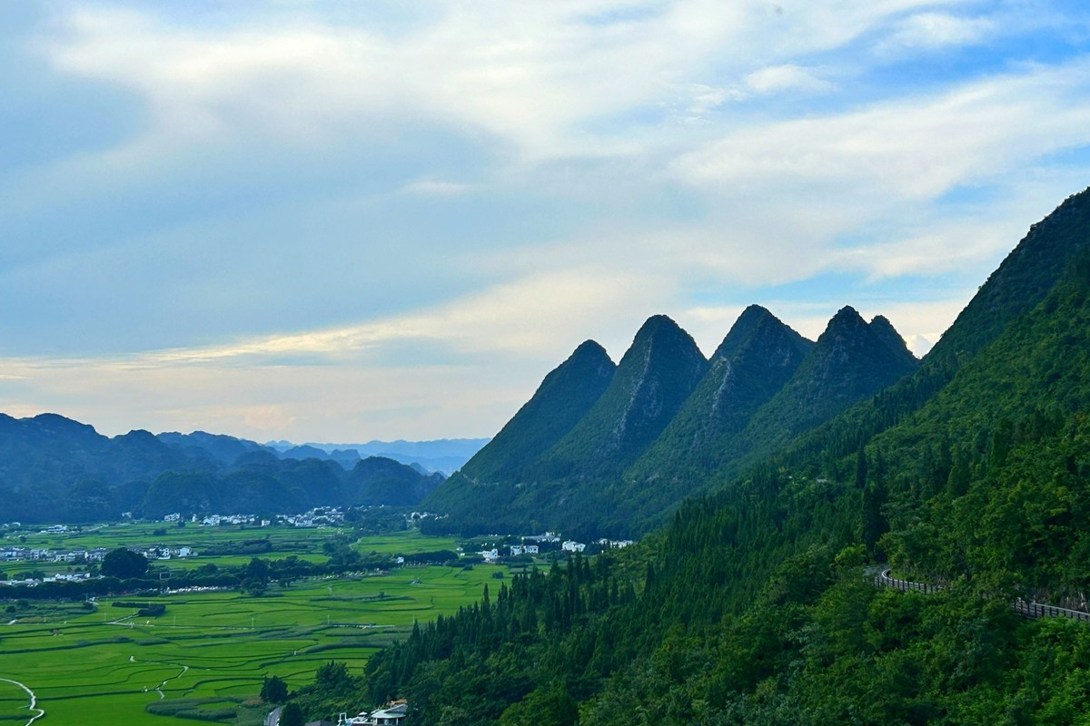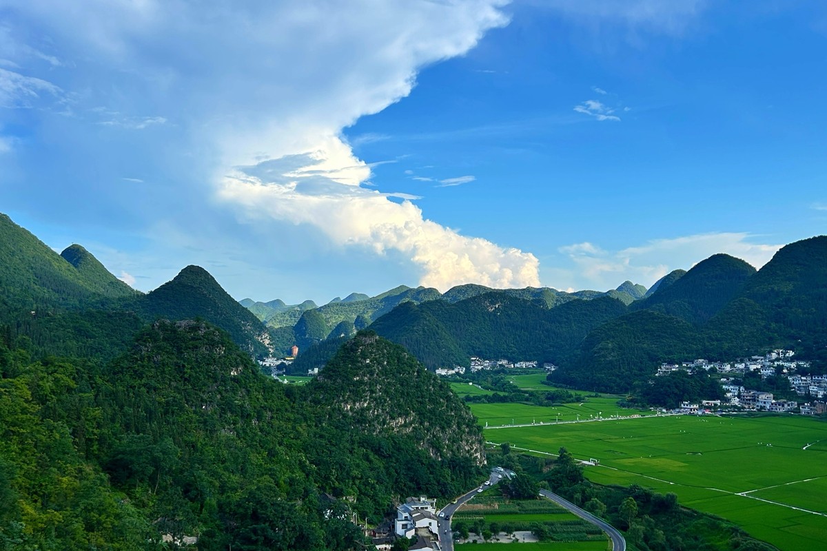 萬峰林位于貴州省黔西南布依族苗族自治州興義市,是世界上最大、最典型的喀斯特峰林地貌之一,被譽(yù)為“天下奇觀”。這里群峰連綿數(shù)百里,形態(tài)各異,大小峰林錯(cuò)落有致,宛如綠色的海洋。山間村寨點(diǎn)綴其間,梯田層層疊疊,與碧綠的田園交相輝映,構(gòu)成一幅獨(dú)特的田園畫卷。(電力公司 張世博)