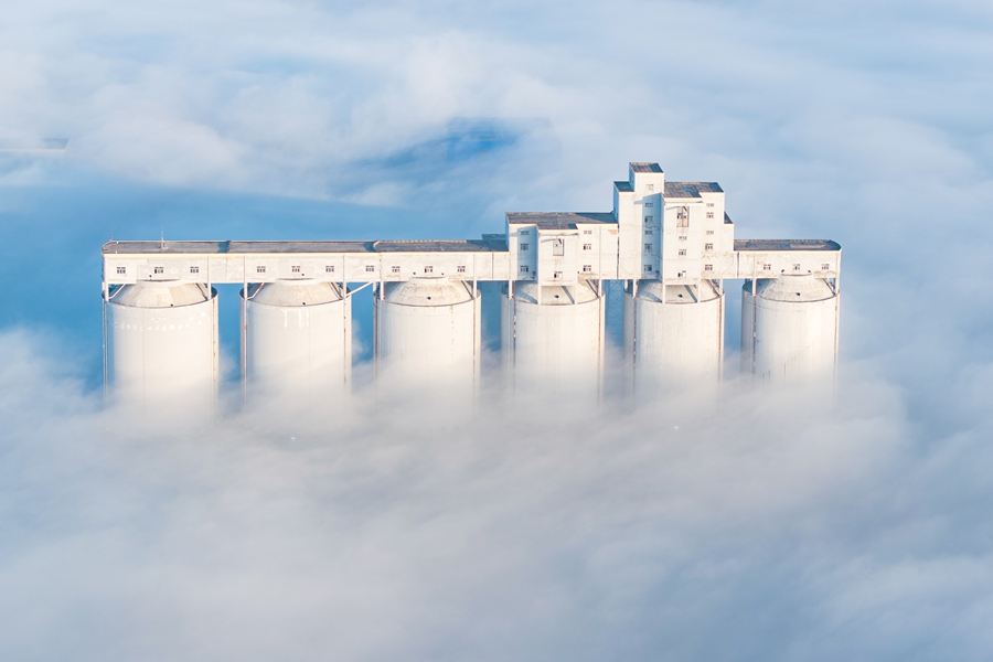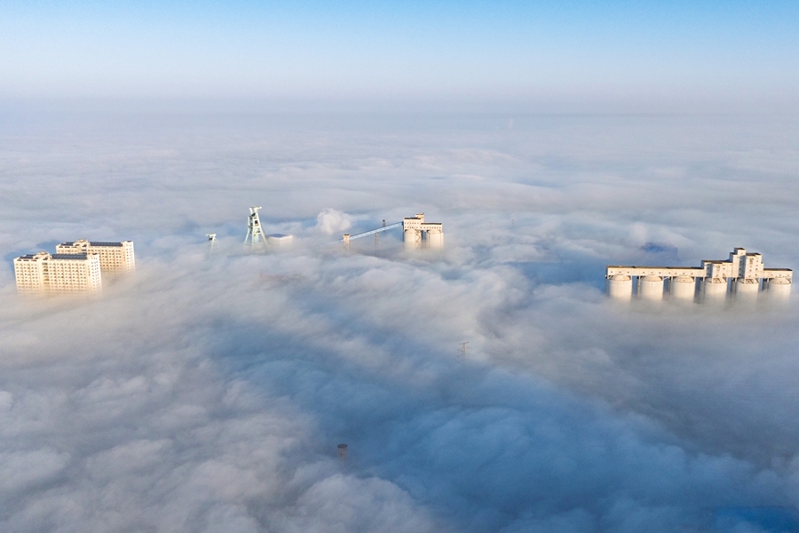 清晨的陽(yáng)光灑在彬州新民塬上,云霧繚繞讓山脊的輪廓被柔化了,在眼簾中若有若無(wú),仿佛一幅酣暢淋漓的淡墨寫(xiě)意。井架、煤倉(cāng)更顯高峻,通過(guò)航拍視角,記錄下工業(yè)園區(qū)內(nèi)建筑在云海茫茫間似隱似現(xiàn)的景象,萬(wàn)籟俱寂,唯有云霧的寒涼沁入肌膚,如同遺世獨(dú)立的仙境,隔絕了塵世一切喧囂。(文家坡礦 劉昊)
