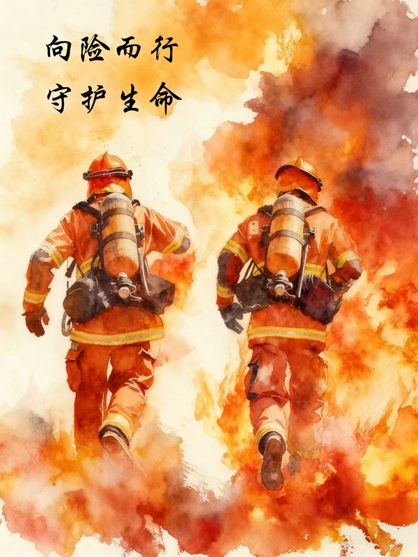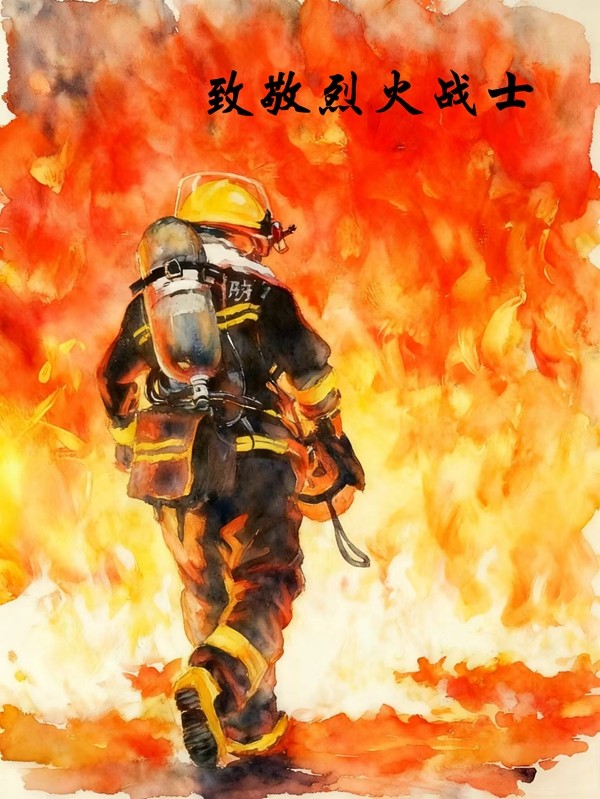 沈淵博繪畫:向險(xiǎn)而行 守護(hù)生命——致敬烈焰中的逆行者