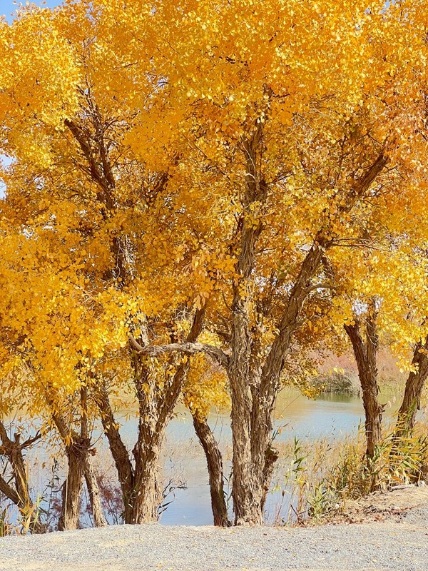 在維吾爾語中,澤普意為“漂著金子的河”。距離喀什約240公里,位于澤普縣城西南40公里處的金湖楊國家森林公園,便靜臥于這片流淌著金色的土地上。這里被譽(yù)為“貴族胡楊”,坐落于葉爾羌河沖積扇上緣,三面環(huán)水,得天獨(dú)厚的水土滋養(yǎng)出胡楊別樣的秀美風(fēng)姿。在秋日里綻放出油畫般濃烈而純凈的金色,與水色天光交相輝映,構(gòu)成一幅靜謐而輝煌的塞外畫卷。(文家坡礦 董鳳艷)