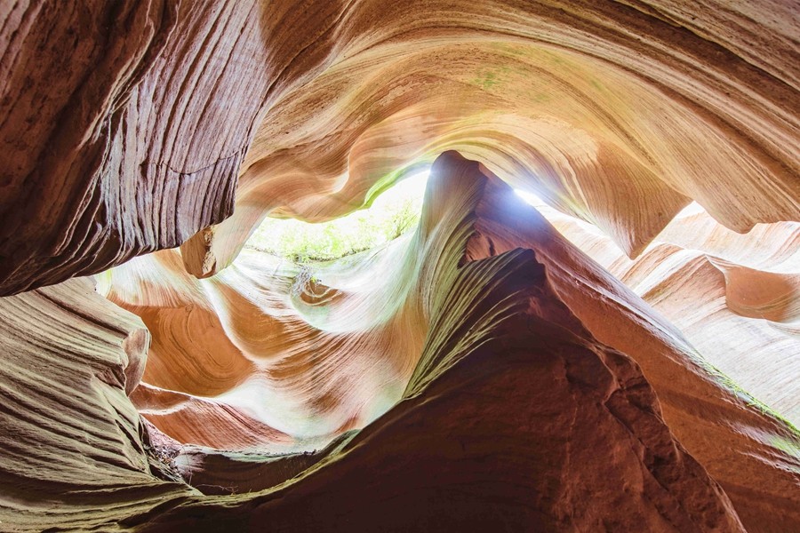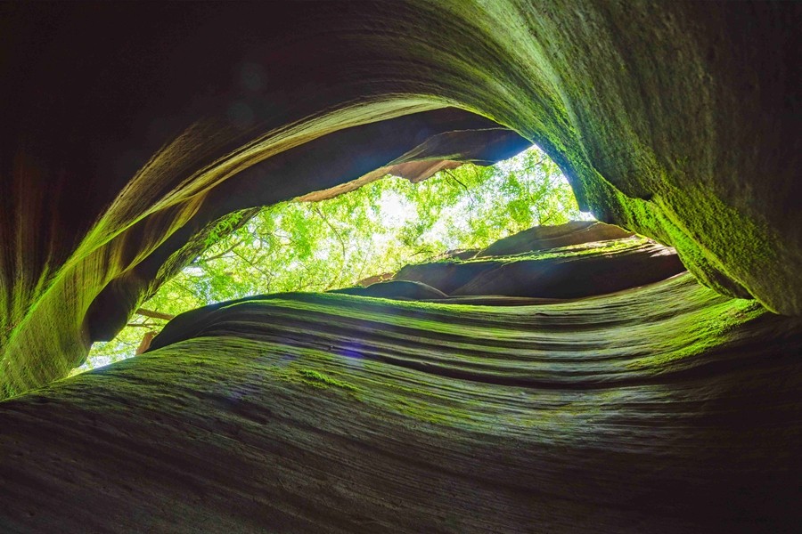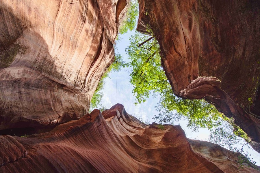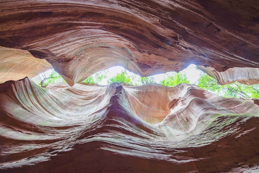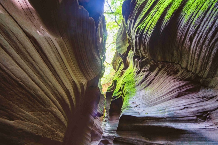 陜北黃土之下,藏著延安甘泉雨岔的地質(zhì)奇觀。狹窄峽谷間,巖壁被流水雕琢成柔美曲線,紅砂巖在光影中暈染出深淺交織的肌理。陽光穿透裂隙灑落,斑駁光影與巖壁紋路相擁,似大自然揮毫的抽象畫作。每一道褶皺都沉淀著歲月,每一縷光線都跳動著生機,行走其間,宛若闖入被時光偏愛的秘境,沉浸式感受天地造化的鬼斧神工。(小莊礦 雷智勇)