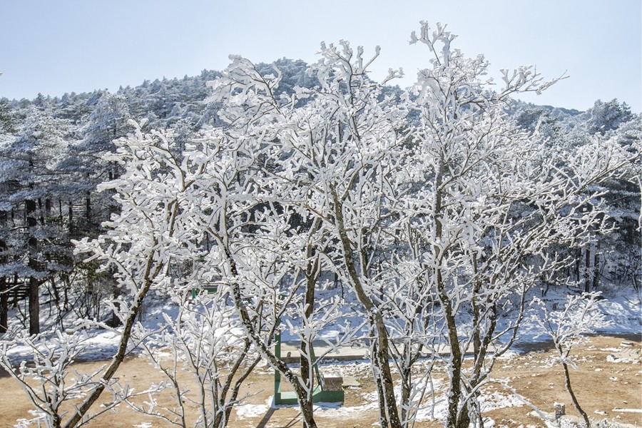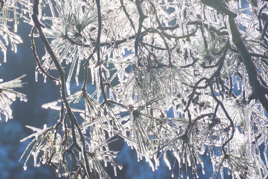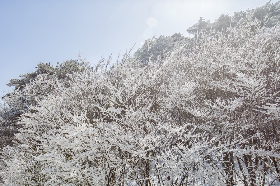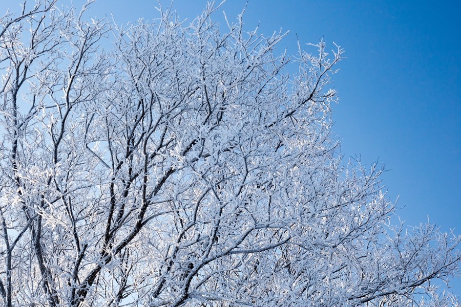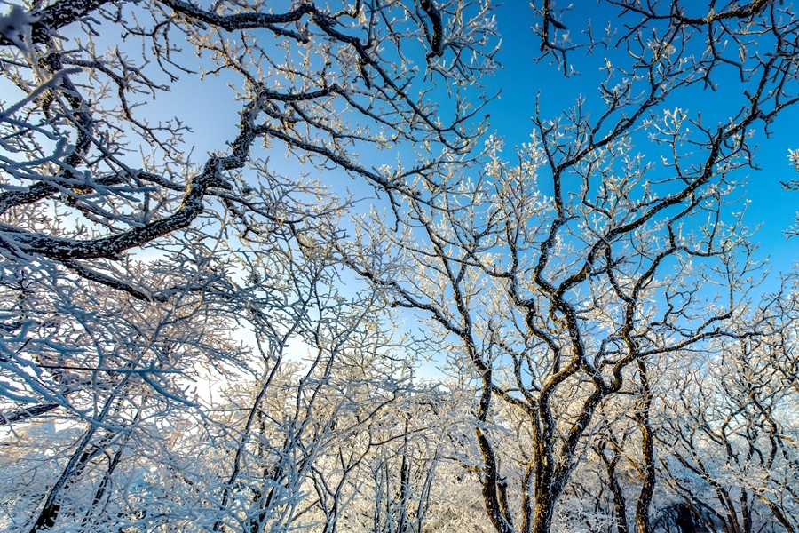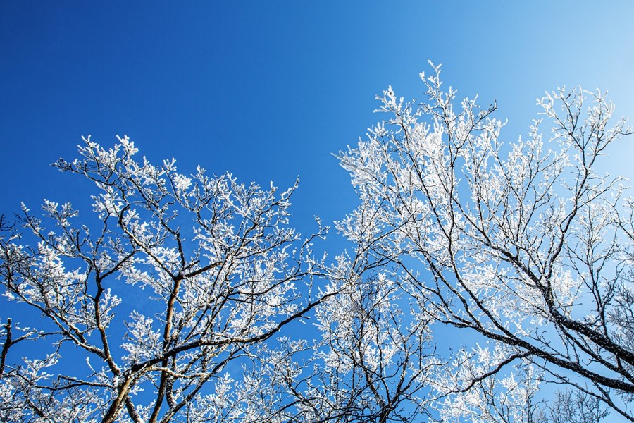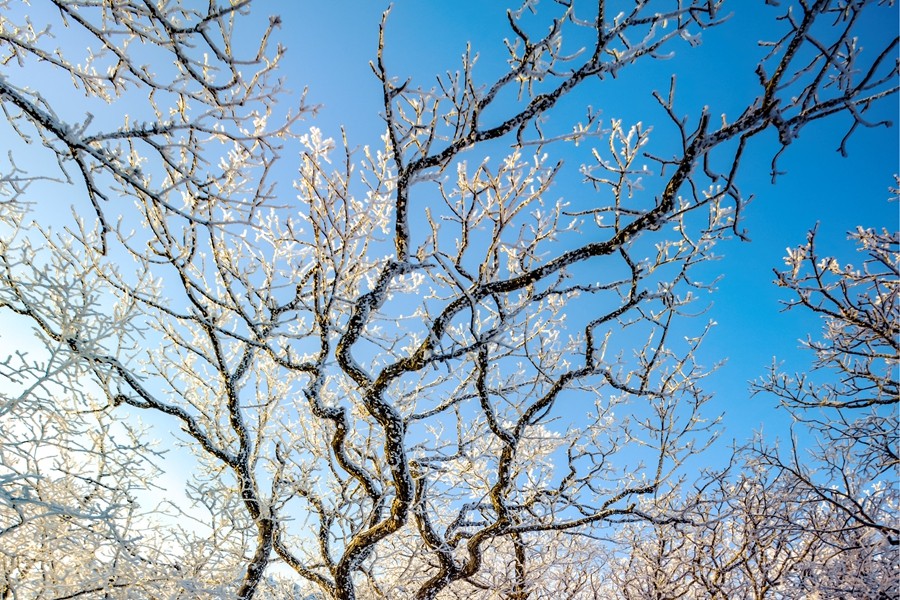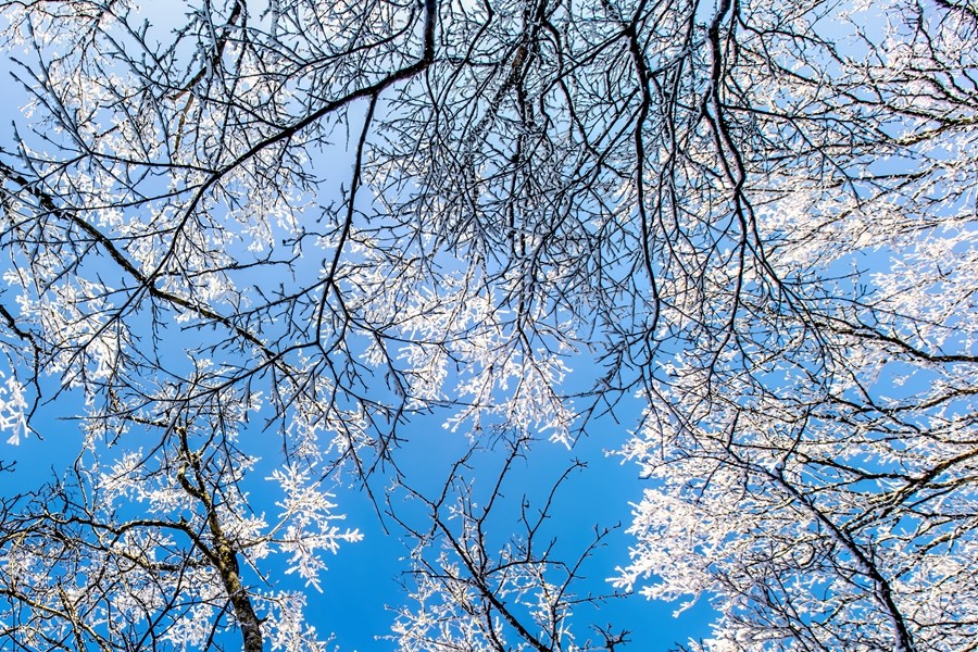 遼東寒枝之上,凝著天地素宣的霧凇奇境。疏朗林木間,霜雪被晨風雕琢成蓬松輪廓,冰晶在曦光中折射出清透交織的光暈。天光穿透霧靄輕撫,朦朧光華與枝杈曲線相融,似造化落成的工筆水墨。每一簇瓊英都凝結著瞬息的永恒,每一寸皎潔都呼吸著寒冽的純凈,駐足凝望,恍若步入被寒冬呵出的夢境,沉浸式領略時光以風為刃、以霜為墨的靈犀之工。(小莊礦 雷智勇)
