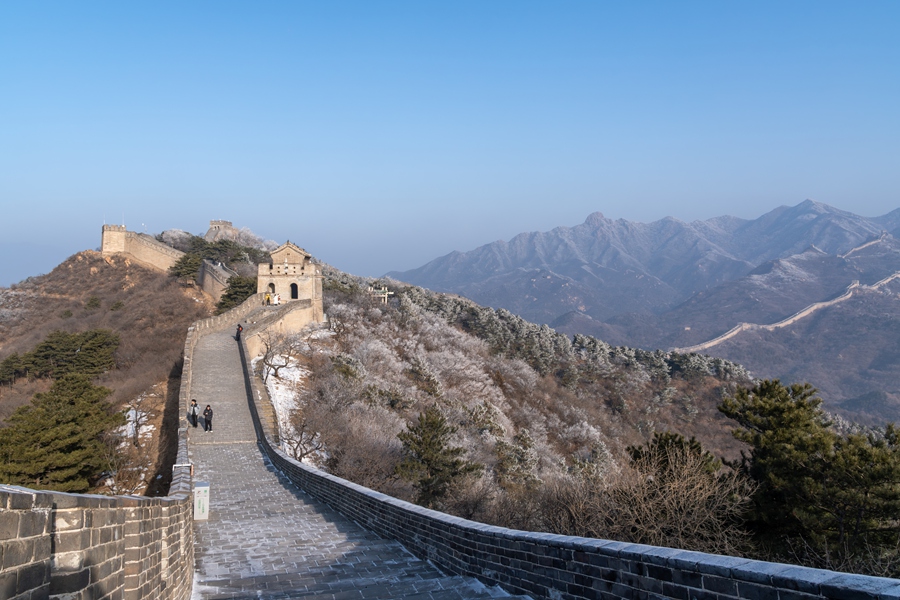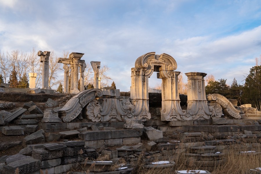 朔風(fēng)掠過天安門廣場,國旗在空中獵獵作響,紅墻與白雪相映,莊嚴(yán)中透著清冽之美。雪落紫禁城,飛檐斗拱裹上銀裝,屋脊獸在冷光里輪廓分明,千年宮闕靜默如一幅水墨長卷。圓明園的殘柱立在寒風(fēng)中,漢白玉的肌理凝著霜花,斷壁殘垣在冬日晴空下更顯蒼涼,訴說著歷史的厚重。八達(dá)嶺長城蜿蜒如銀龍,敵樓披雪似衛(wèi)士,踏雪登城,仿佛邁入千年戍邊的雄渾史詩。(小莊礦 王樂林)