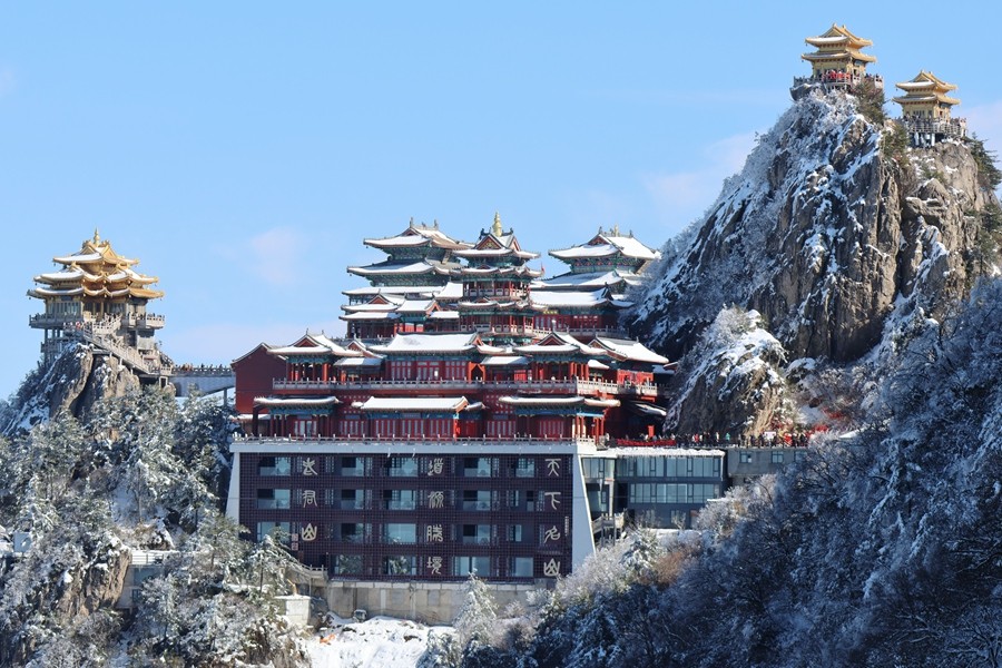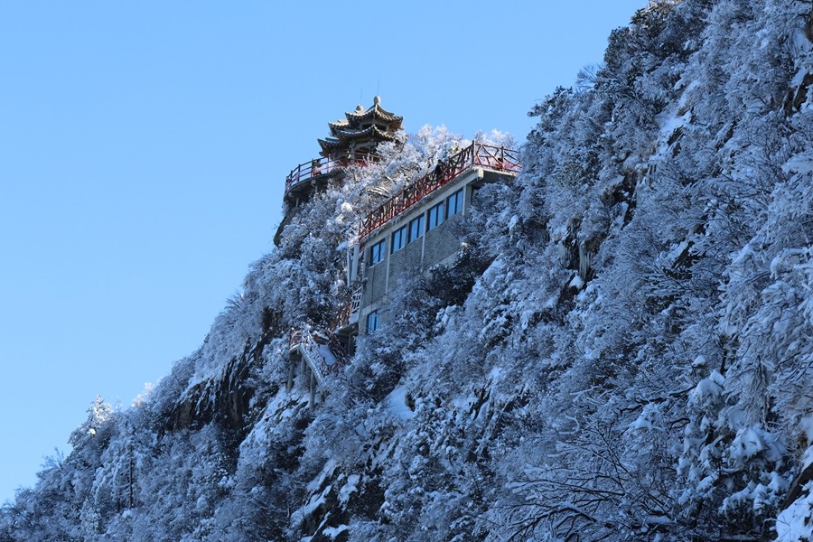 “人間無雙圣境,天下第一仙山”。老君山坐落于洛陽欒川縣境內(nèi),主峰海拔2200米,古稱景室山,是聞名遐邇的道教名山,因太上老君李耳歸隱于此結(jié)廬修煉而得名。雪落老君山,整座山巒盡披銀裝,漫山霧凇凝霜掛玉、瓊枝林立,煙波浩渺的云海翻涌山間,金頂群殿矗立于云海之巔,仙霧繚繞間宛若云霄天庭。身臨此境,目之所及皆為瓊瑤,心之所感盡是清寧,恍若踏入人間仙境,又似置身天上宮闕。(胡家河礦 張國鵬)