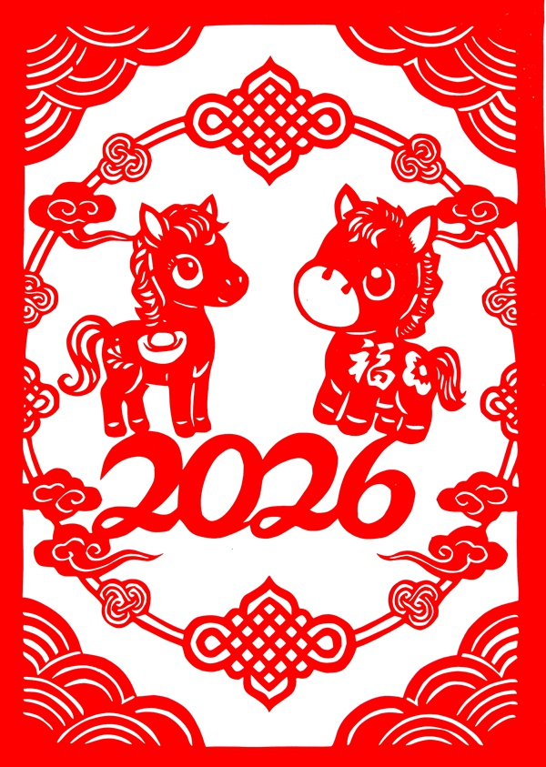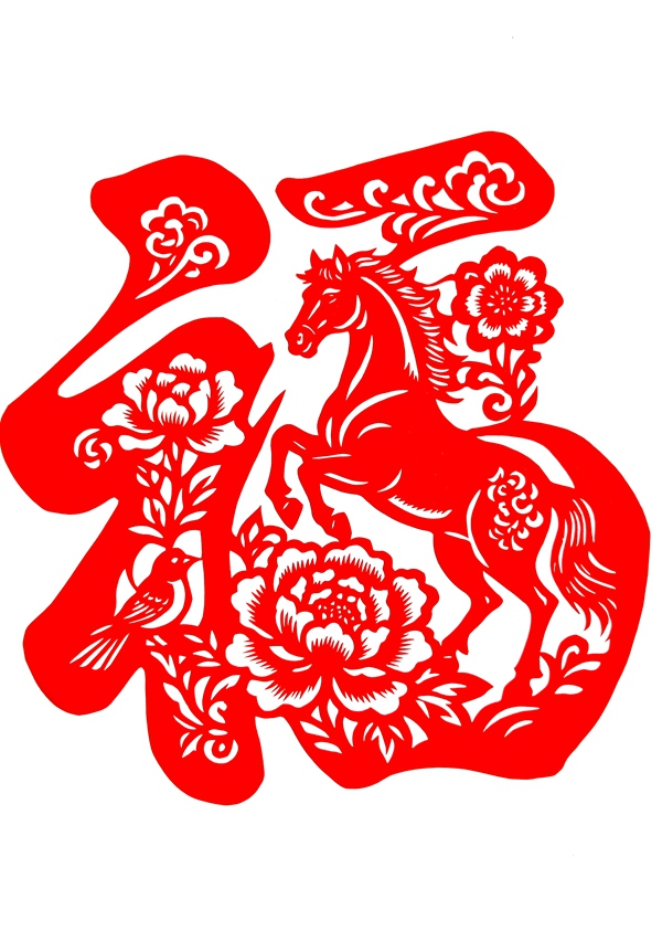 職工刻紙:福馬迎春 馬年大吉