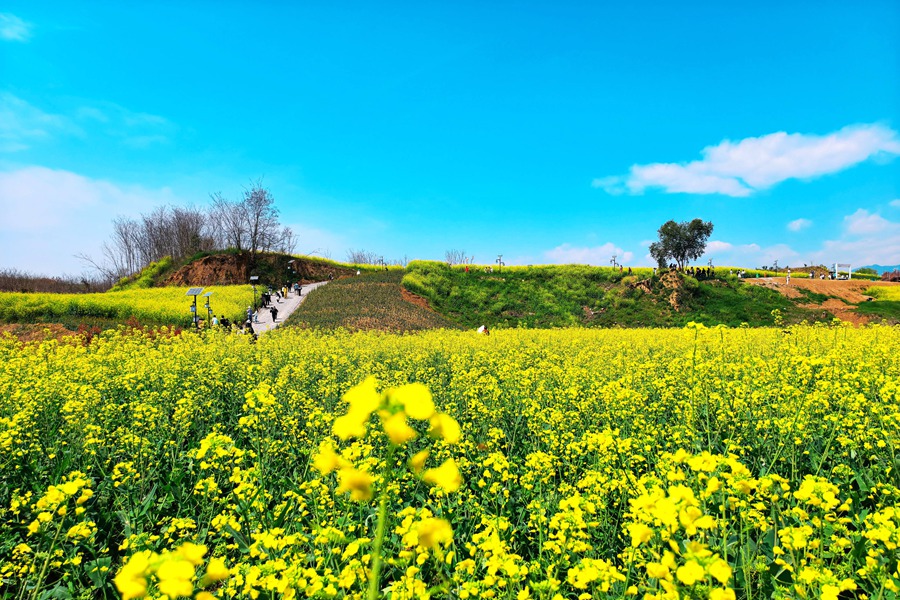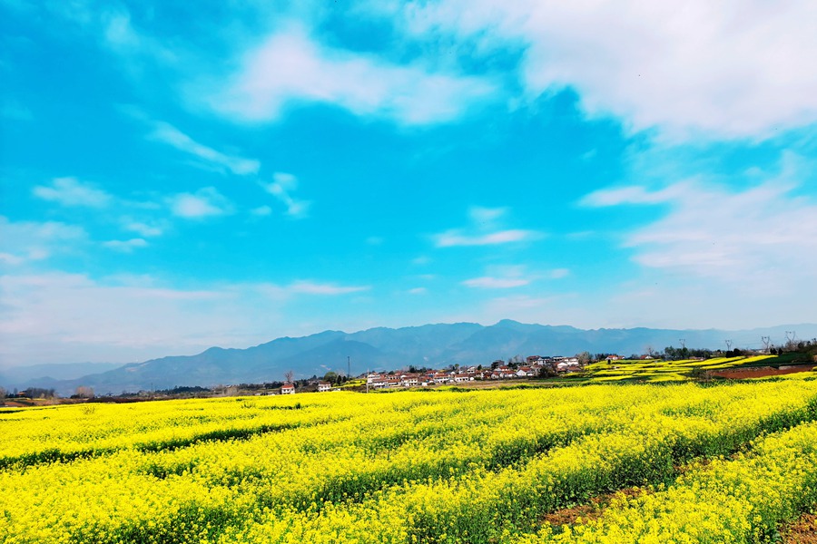 在春暖花開的季節(jié),漢中油菜花節(jié)盛大開啟。金黃的油菜花海在陽(yáng)光下閃耀,真的是美不勝收。盛開的油菜花海與鑲嵌其間的麥苗及青山綠水相互掩映,構(gòu)成漢中盆地一道亮麗的風(fēng)景線。(文家坡發(fā)電公司 李軻)