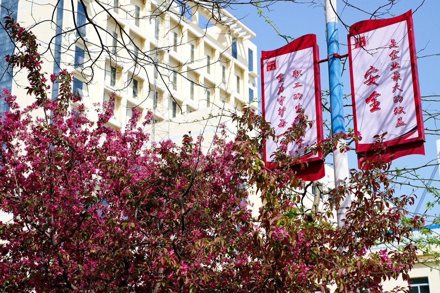 暮春時(shí)節(jié),陽光和煦。暖風(fēng)裹挾花香,在礦區(qū)四處流淌,沁人心脾。碧桃艷麗綻放,杏花粉白成簇,垂柳綠絲拂面,紫荊串串垂掛,櫻花如雪紛揚(yáng)飄落。草坪上,蒲公英星星點(diǎn)點(diǎn);墻角邊,油菜花開得正盛。處處生機(jī)盎然,暖意融融,百花競放,爭奇斗艷。(文家坡礦 成世杰)